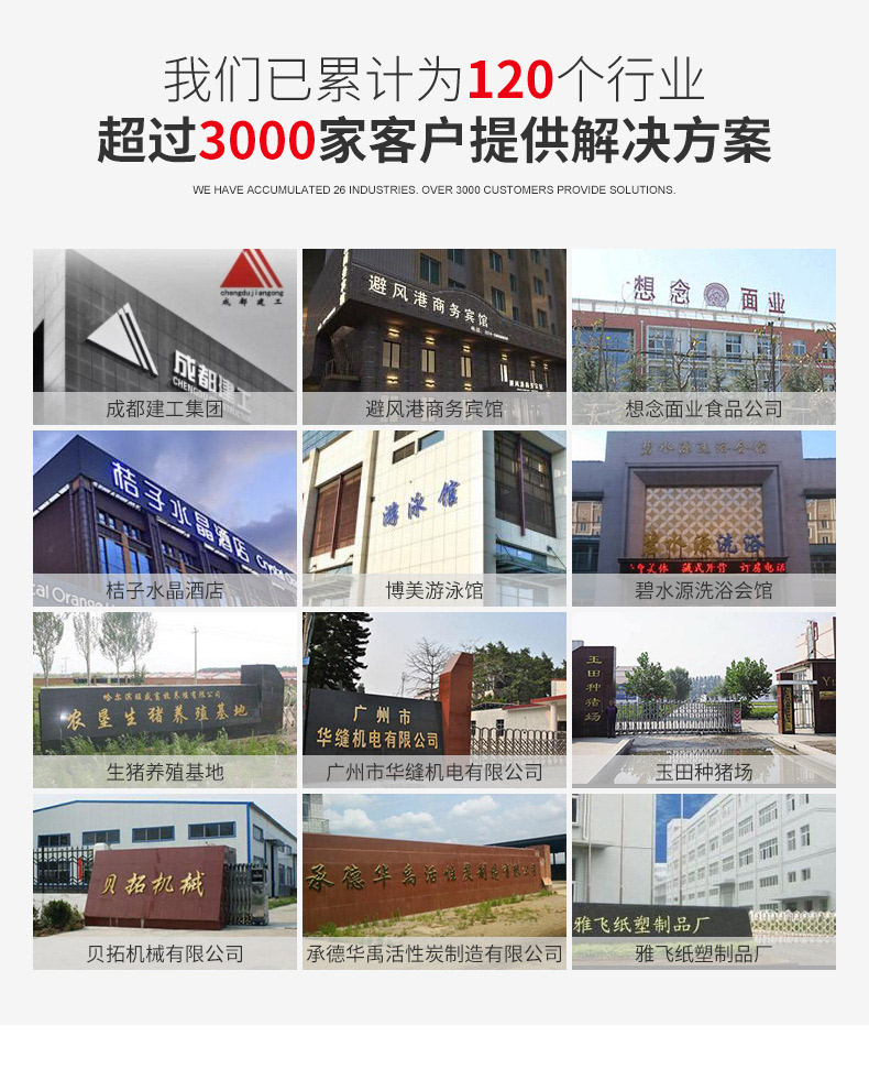 產品泛用于:養殖廠、農業育種、洗浴中心、蔬菜大棚、學校熱水工程、酒店熱水、賓館熱水、中央熱水工程、小區商場供暖熱水、別墅熱水、集中供暖等。