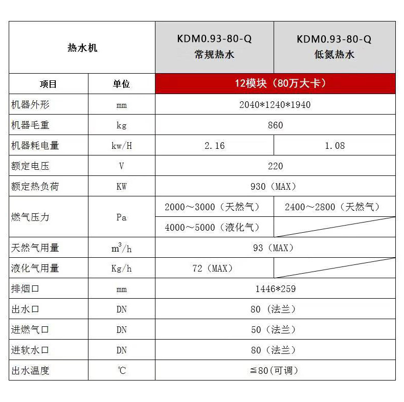 額定熱負荷:930kw(MAX) 出水溫度:≤80℃(可調)參考供暖面積:8000~1500㎡